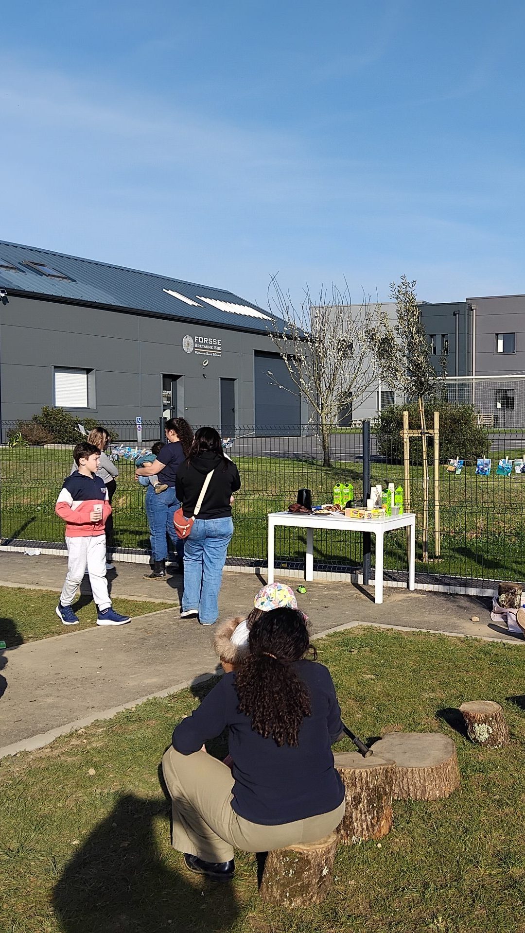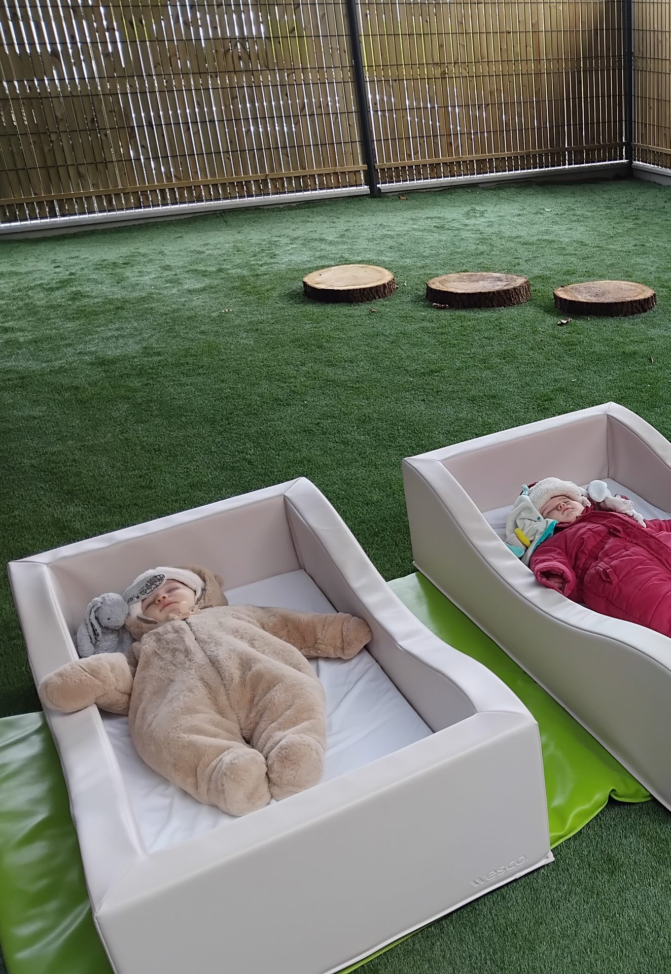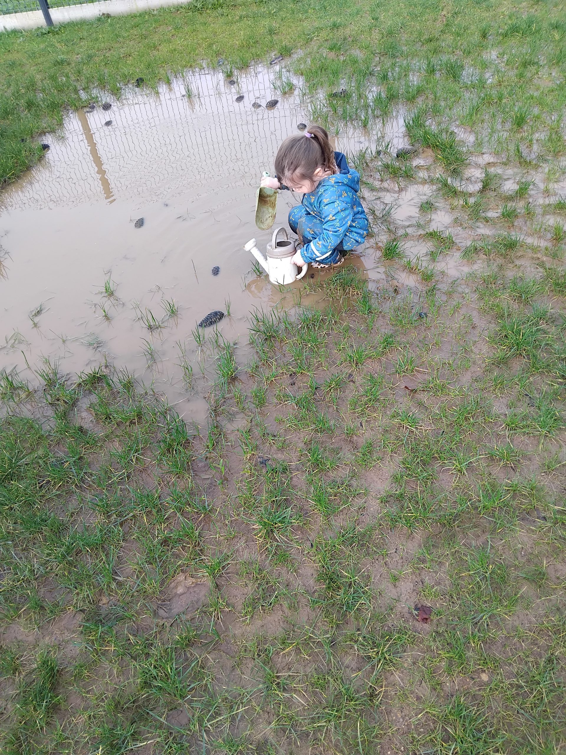 Par ailleurs, notre quotidien est largement tourné vers la nature et l’extérieur : les enfants profitent du jardin par tous les temps, équipés de vêtements adaptés, et dès que les conditions le permettent, la journée se déroule principalement en plein air, de l’accueil au départ. Certains enfants peuvent même y prendre leurs repas et y faire la sieste, dans un environnement apaisant et stimulant, aménagé avec des éléments naturels.
